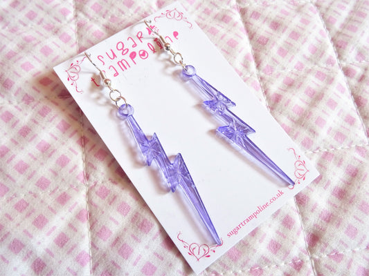 Purple Lightning Bolt Translucent Kawaii Earrings